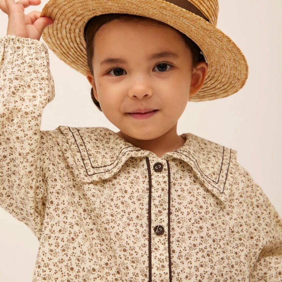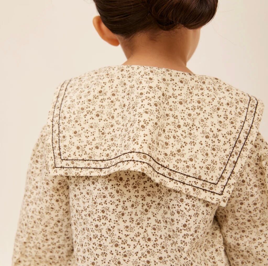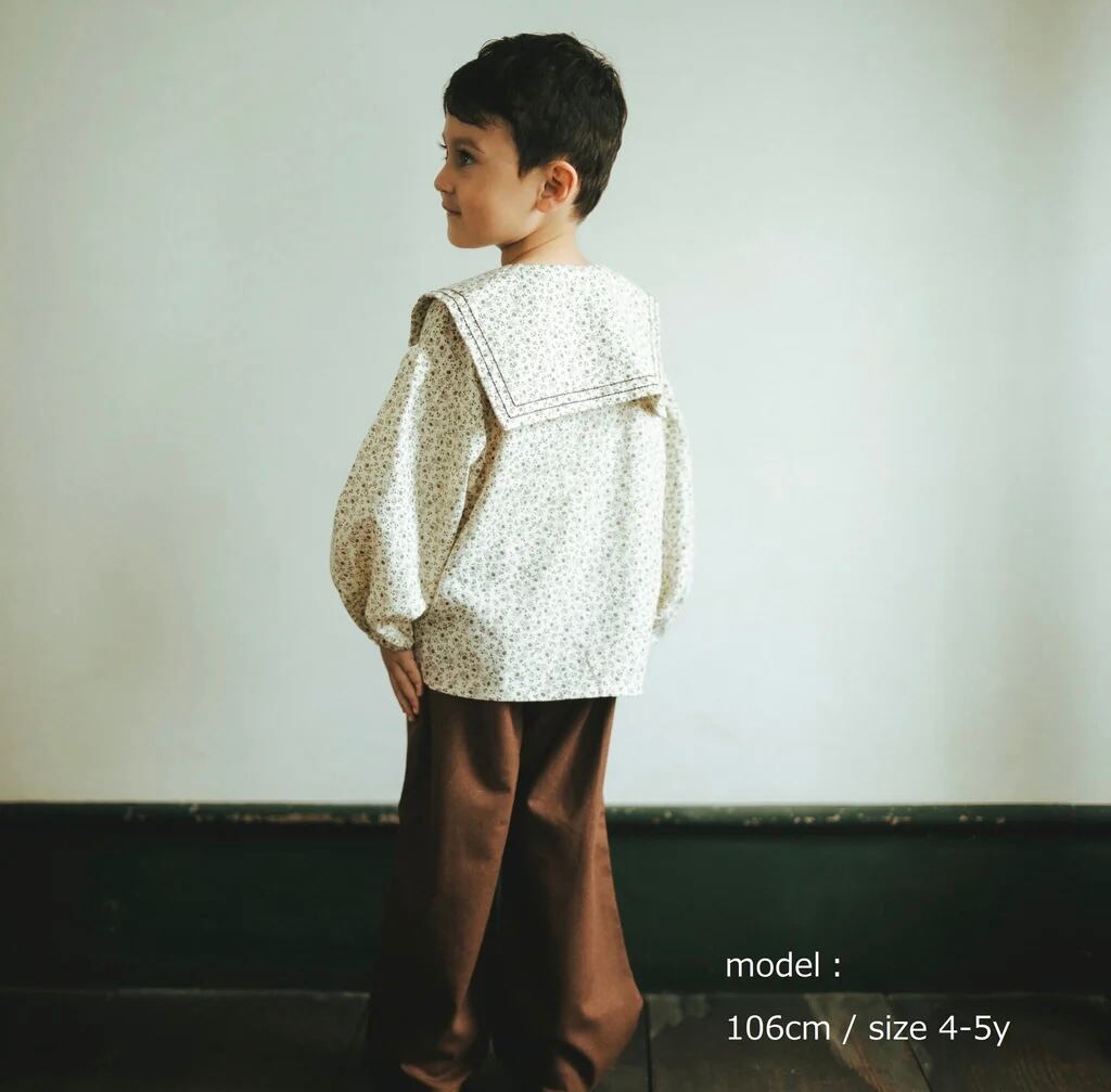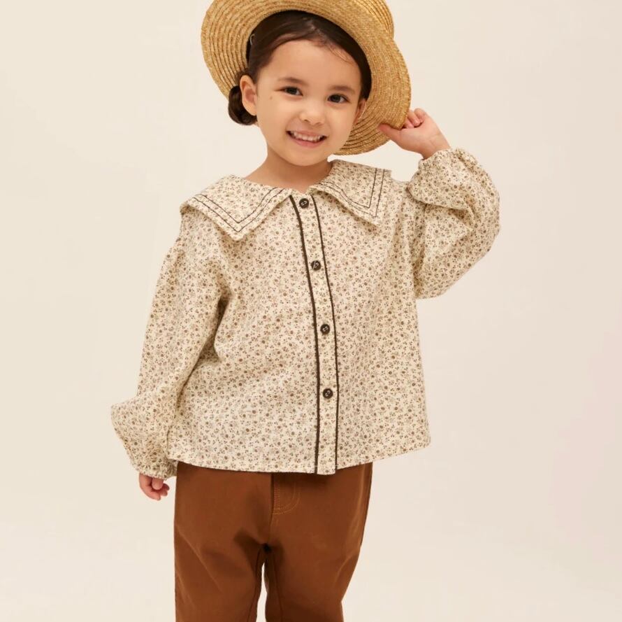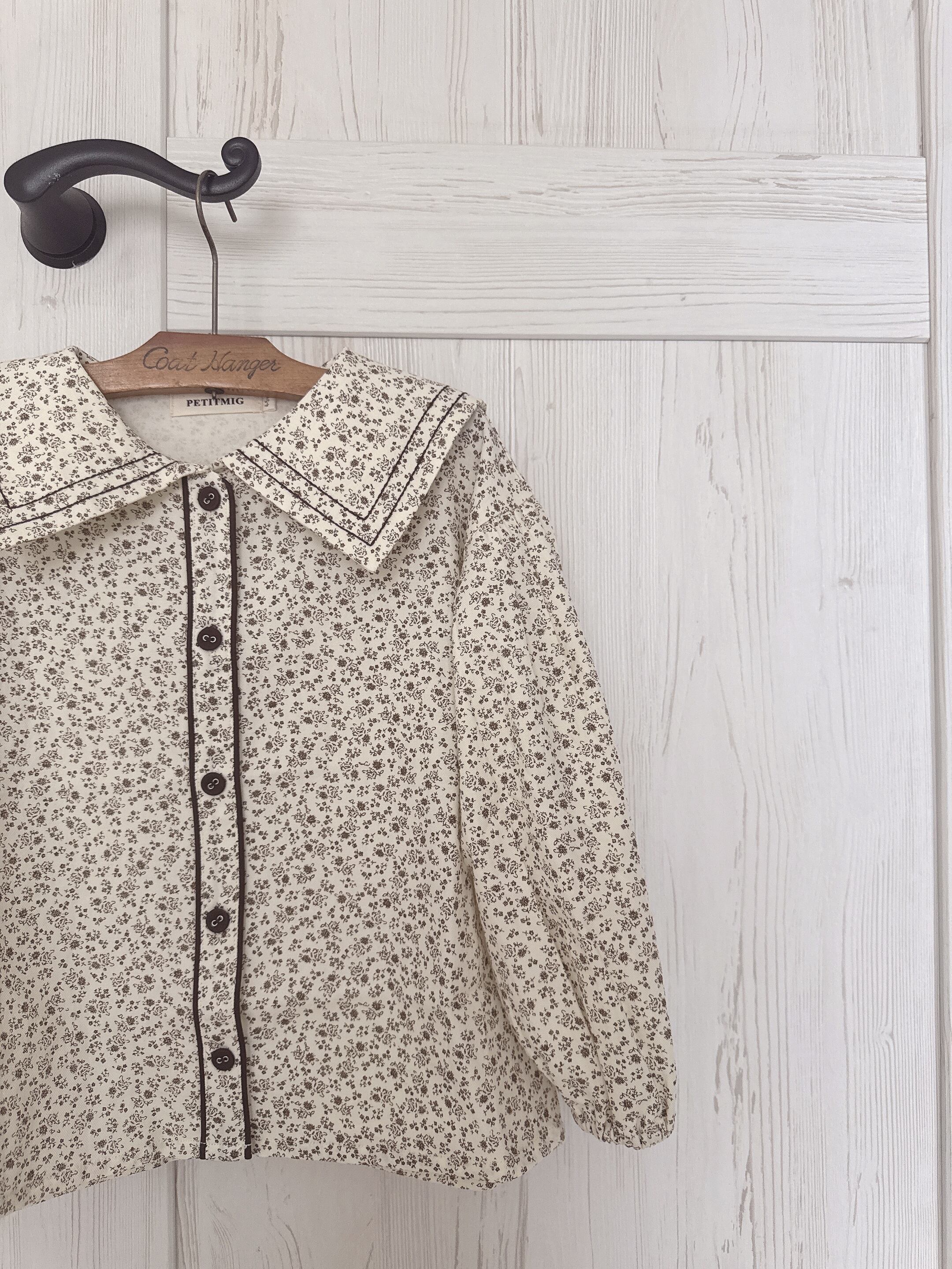 ブラウン色の小花柄セーラーカラーブラウス