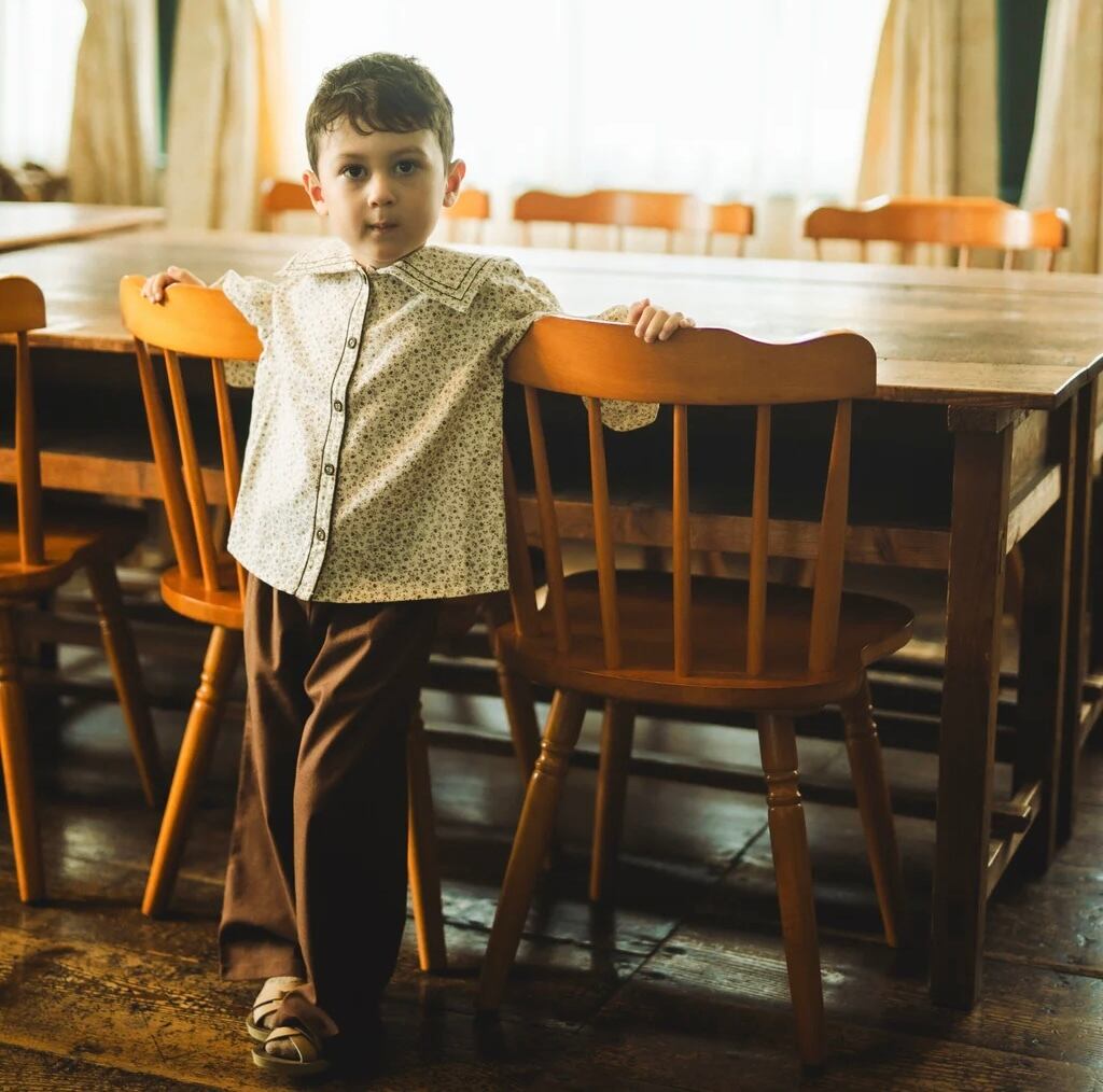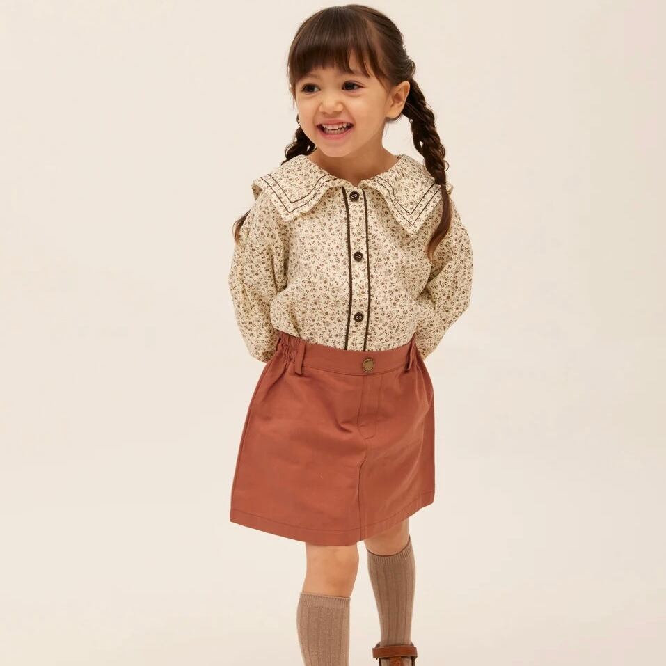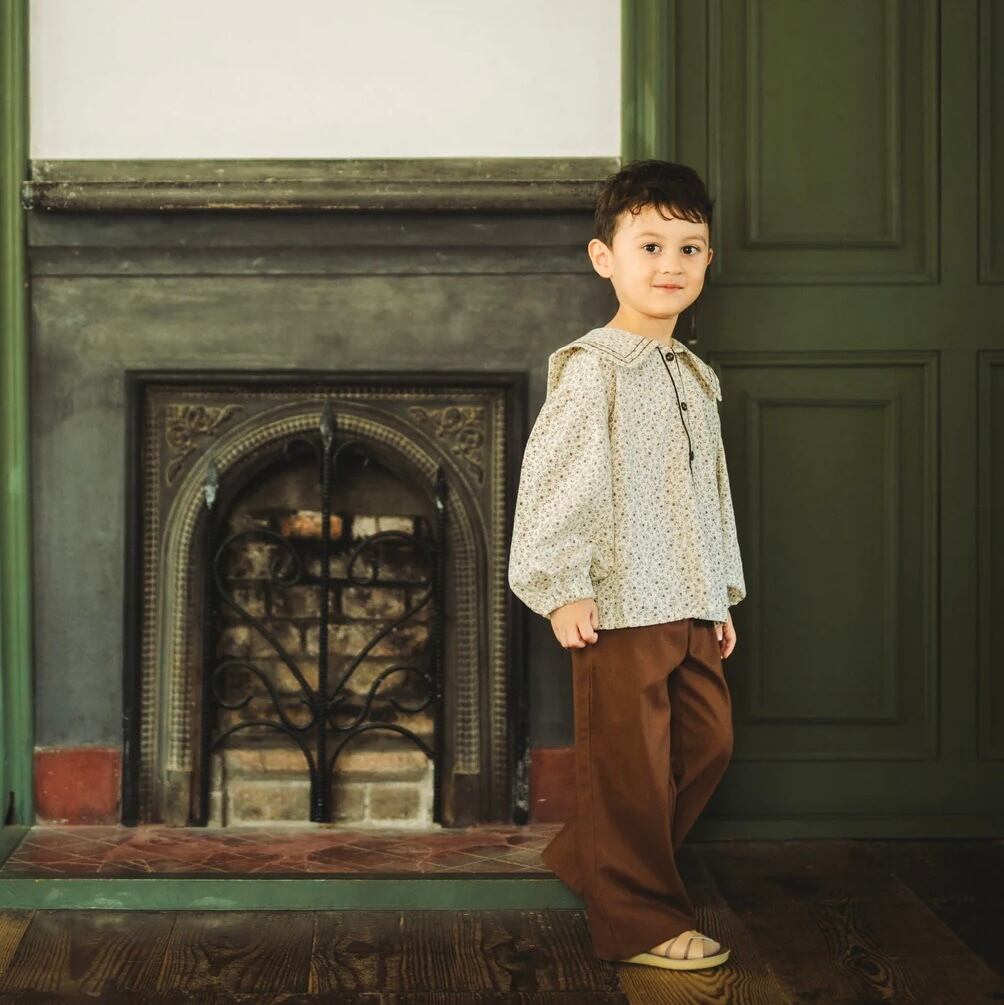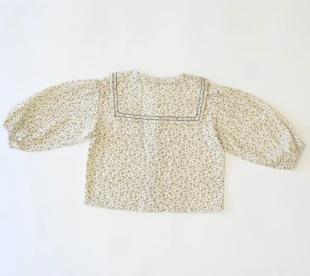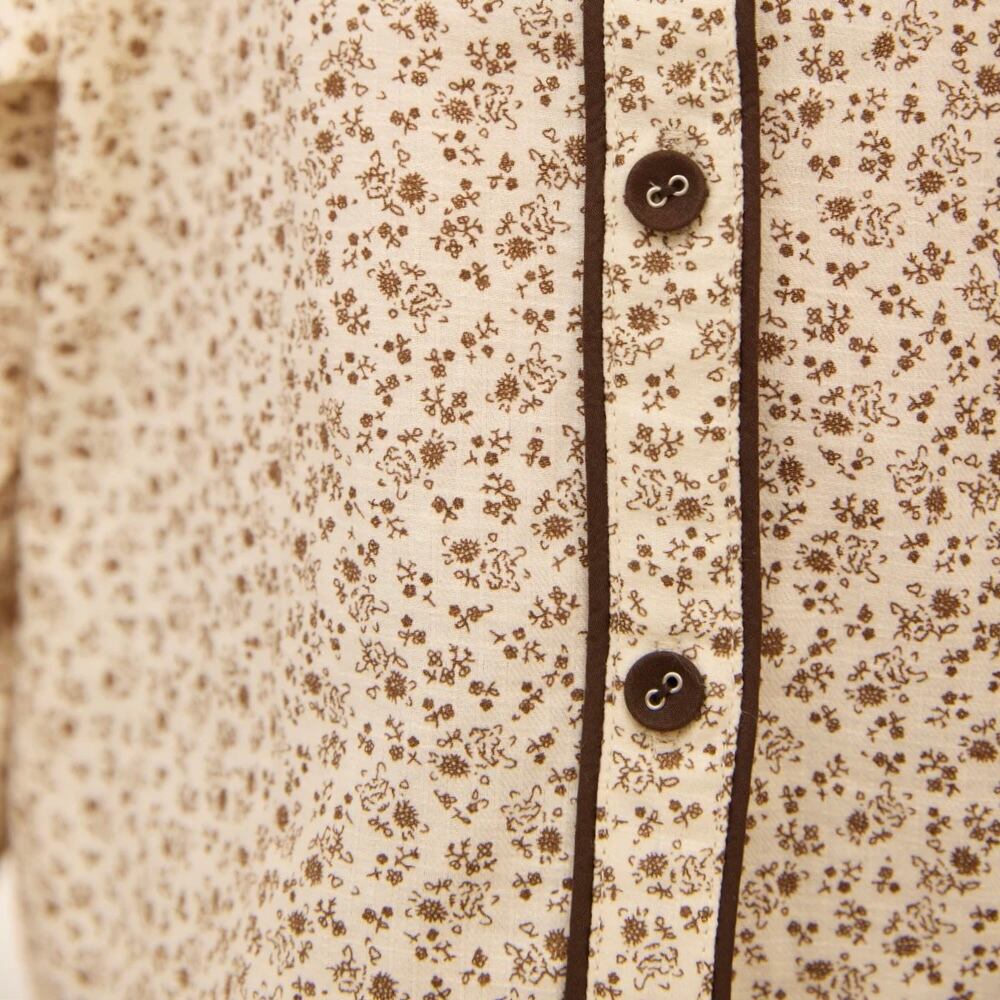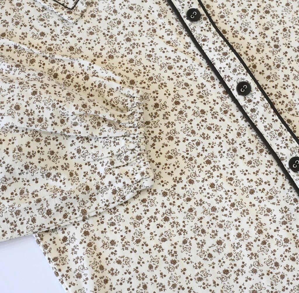 ブラウン色の小花柄セーラーカラーブラウス