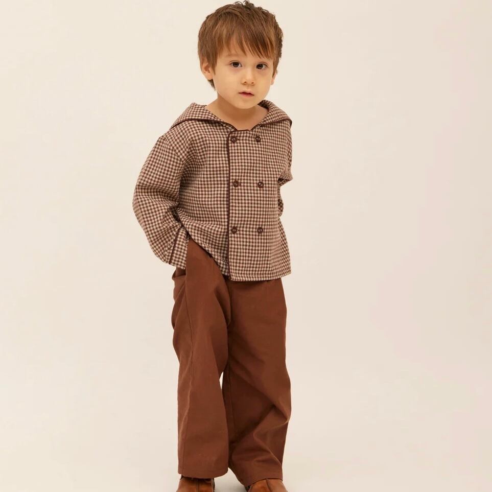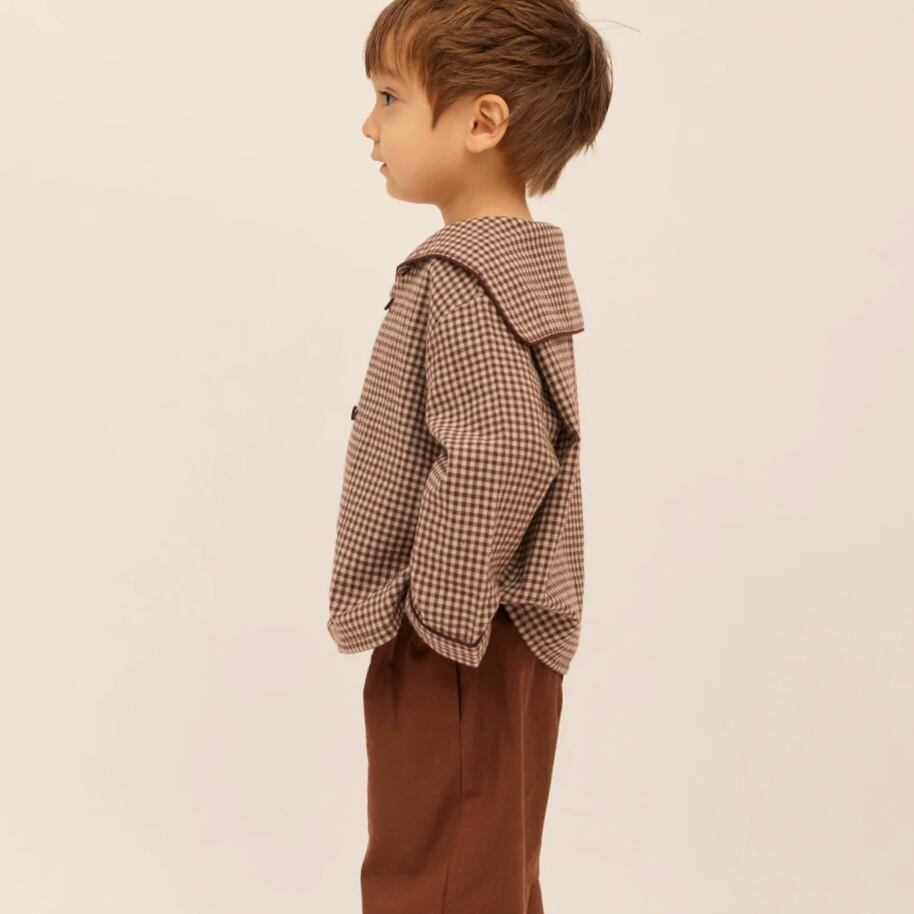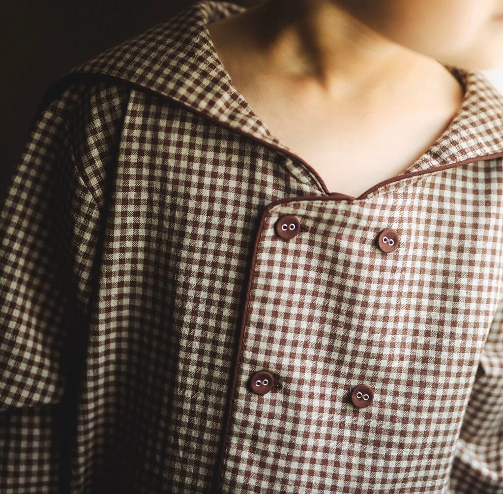 レトロなブラウンチェック柄が特徴のセーラーカラーシャツ